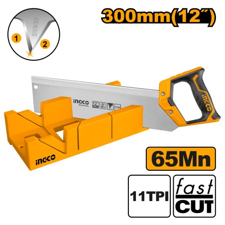 SCIE À DOS 300MM ET BOÎTE À ONGLETS - INGCO