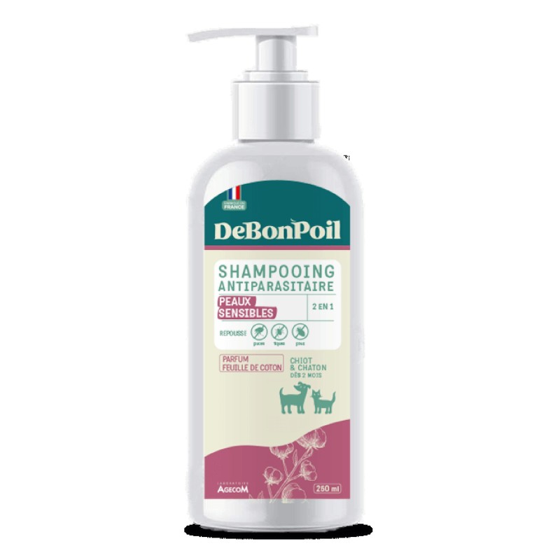 Grâce à son principe actif, le Géraniol, le shampooing 3 en 1 chien & chat Actiplant aide à repousser les puces, poux et tiques adultes rapidement. Le shampooing riche et concentré opère par simple contact en agissant sur les parasites. Le shampooing 3 en 1 spécial peaux sensibles permet de laver délicatement l’épiderme de votre chiot et chaton. Il lui laisse un pelage doux et une peau protégée, parfumée d’une agréable odeur de fleur de coton. Il permet ainsi de lutter contre les parasites tout en nettoyant votre animal en un seul geste.