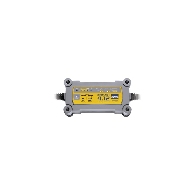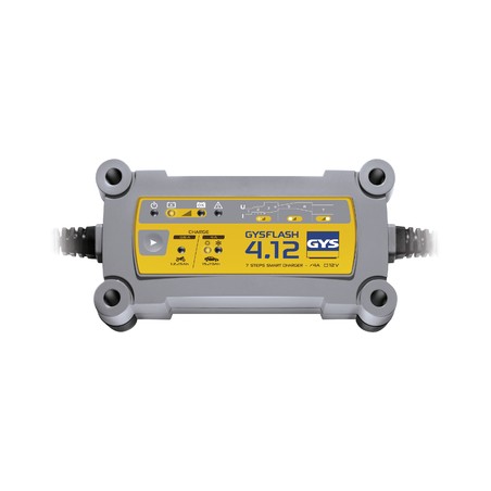 Le GYSFLASH 4.12 est particulièrement recommandé pour la recharge des batteries motos, quads, tondeuses autoportées, jet-ski, karting et véhicule léger en 12 V