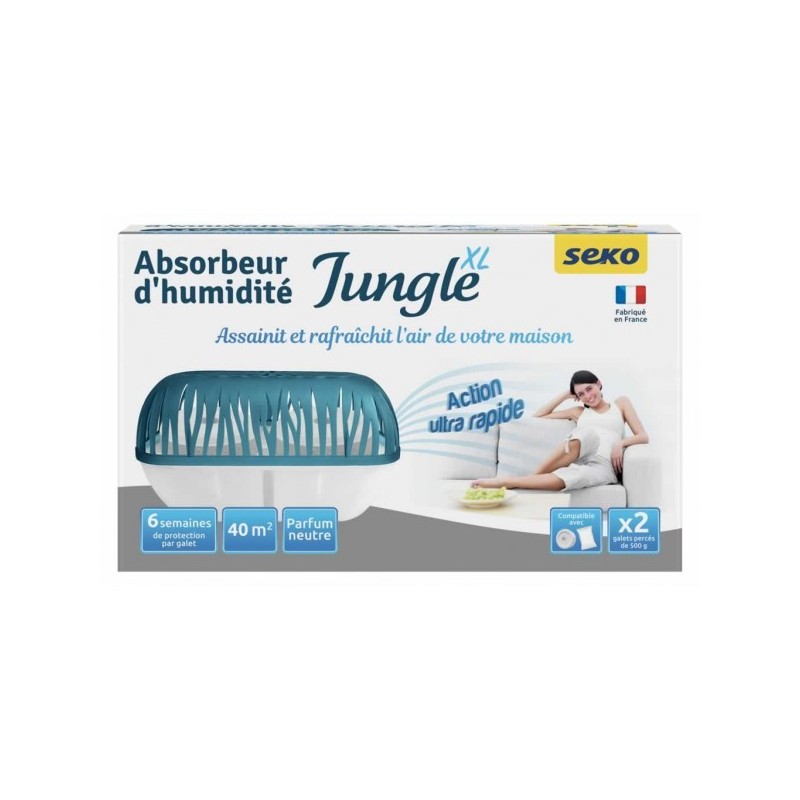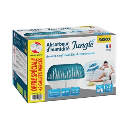 - Absorbeur d'humidité jungle XL + 2 galets 500g.- Facile d'usage, sûr et sans risque pour l'environnement.