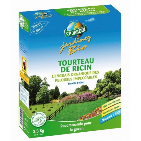 L'engrais organique des pelouses impeccables. Le ricin est une plante tropicale. Le tourteau de ricin, produit entièrement naturel, est obtenu après trituration des graines de ricin. Il possède une action insecticide et un effet répulsif sur les taupes, campagnoles... S'utilise comme fumure de fond et d'entretien, au potager et au jardin d'agrément (gazon). NF U 42-001. Engrais organique. NPK 5,25-2-1,5. Utilisable en Agriculture Biologique.