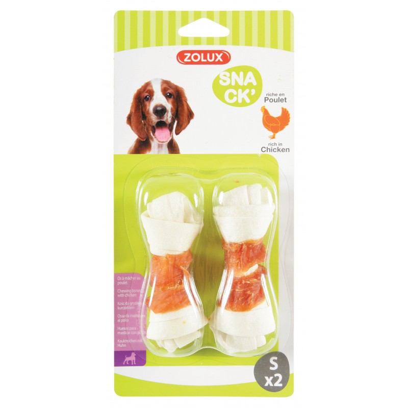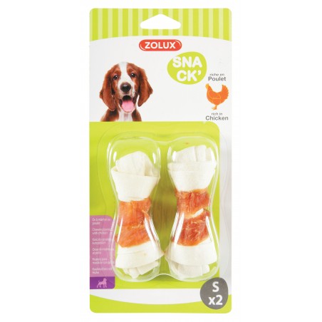 Friandise riche en poulet, élaborée à base de peau de bovin. Favorise l'hygiène dentaire et aide à la bonne mastication.