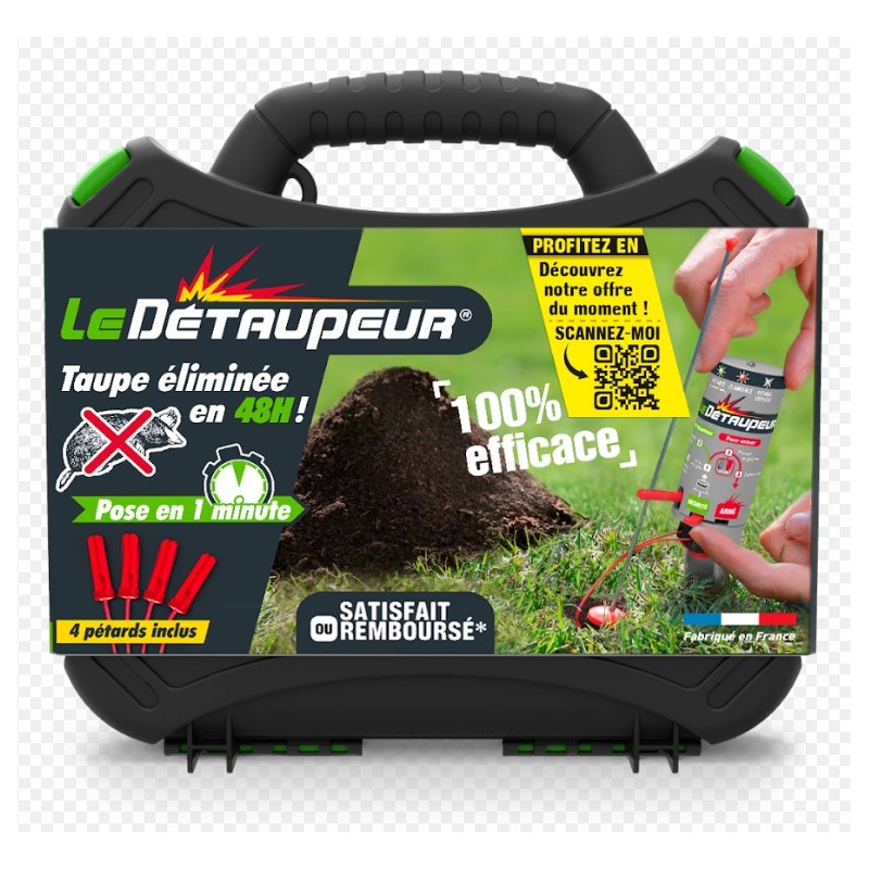 Vendu en mallette. Onde de choc renforcée : 1 pétard évite jusqu'à 50 taupinières. Facile d'utilisation.