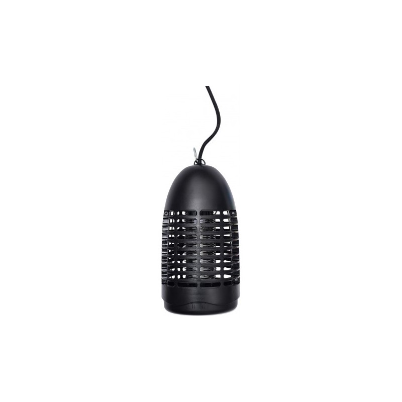 - Fonctionne grâce à la lumière UV qui attire les insectes venant s'électrocuter sur la grille.