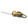 Taille-haies équipé d'une batterie de 48 V de nouvelle génération, d'une lame double de 58 cm et d'une poignée pivotante à 180° proposant trois positions.