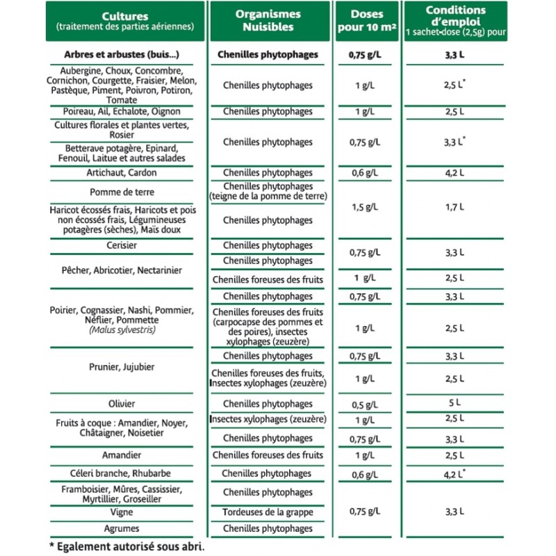 Composition : Bacillus thuringiensis subsp. kurstaki souche SA-11 - 32 000 000 UI/g.
