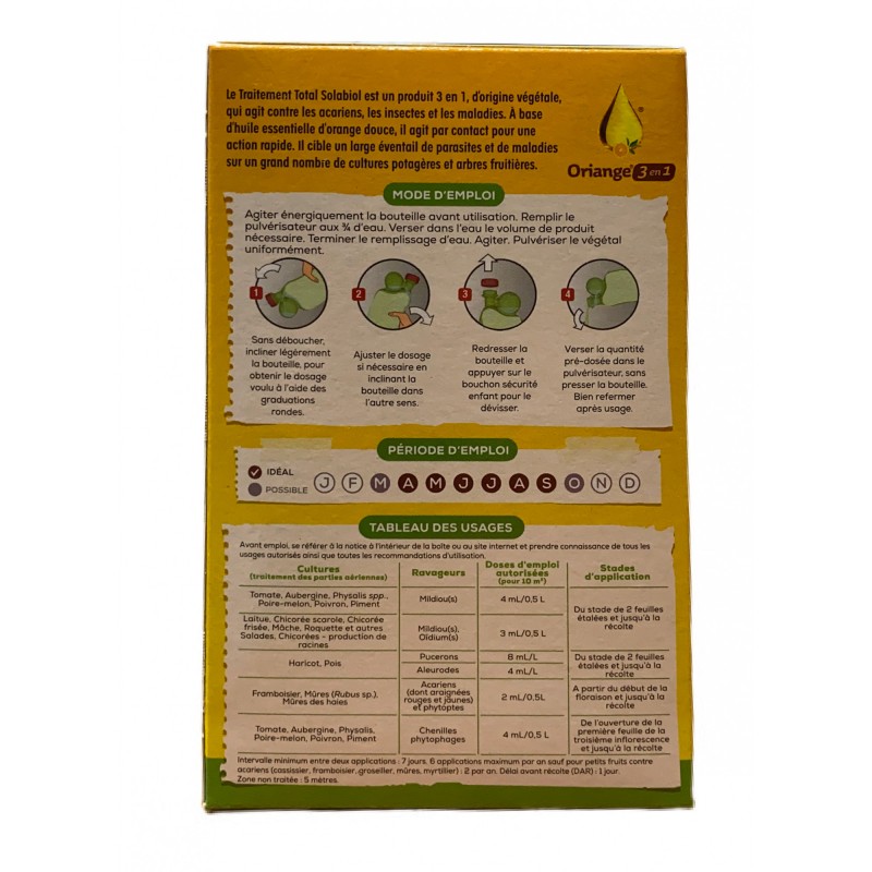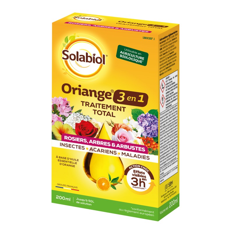 Traitement Total Ornemental Solabiol est un traitement de triple action agissant contre les insectes, les acariens et les maladies. Possédant plus de 85 usages homologués, c'est un traitement polyvalent et utilisable sur de nombreuses cultures : cultures ornementales, arbres fruitiers, potager... Avec des effets visibles sous 2-3h maximum, le traitement est doté d'une action rapide. De plus, c'est un produit UAB et de biocontrôle.