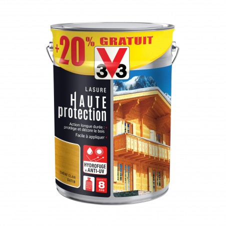 Besoin d’une protection vraiment efficace en toutes circonstances pour vos boiseries extérieures ? Choisissez une solution V33 qui a fait ses preuves, la Lasure Haute Protection avec sa formule à base de solvant pour une tenue impeccable.