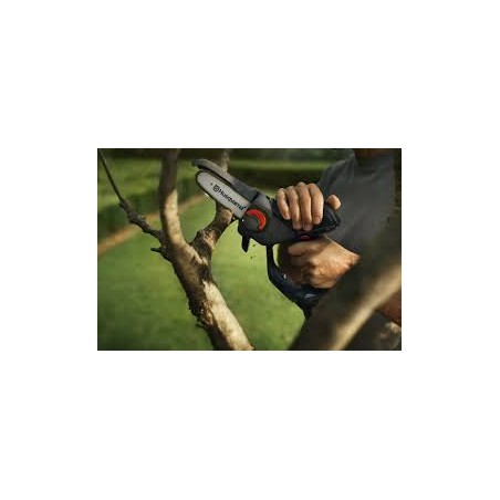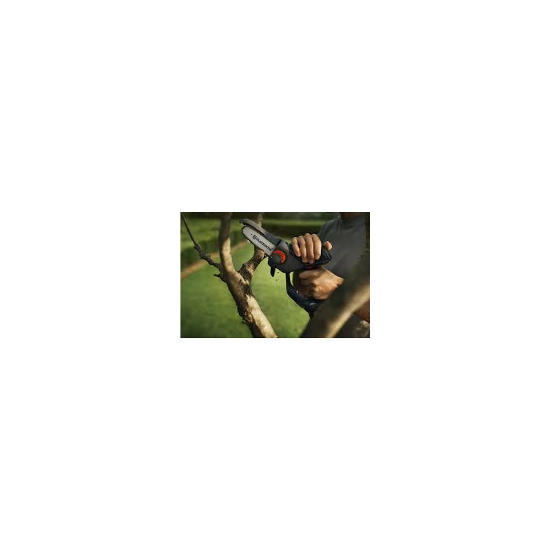 La flexibilité est l’atout principal de la scie de jardin Husqvarna Aspire™ P5-P4A/PE5-P4A. Elle est vendue en deux versions : avec ou sans perche. La perche se fixe et s’ajuste par simple clip et permet l’accès aux branches plus hautes jusqu’à 1.7m de portée. Cette scie d’élagage à batterie compacte est idéale pour l'élagage des arbres, la coupe des déchets de jardin et les petits travaux de menuiserie. Basée sur l’expertise Husqvarna éprouvée en matière de tronçonneuse, cette mini-tronçonneuse d'élagage polyvalente avec son guide de 12,7 cm est suffisamment robuste pour couper facilement des branches de 75 mm de diamètre. Équipée d’une poignée anti-dérapante, le remplacement de la chaîne et du guide se fait sans outil, très facilement. Cette scie de jardin s'arrête automatiquement lorsqu'elle est laissée sans surveillance et possède une interface digitale avec indication du niveau de batterie. Le produit est livré avec un crochet de rangement sur mesure qui peut être monté directement sur le mur ou utilisé avec le système de rail de rangement Husqvarna Aspire