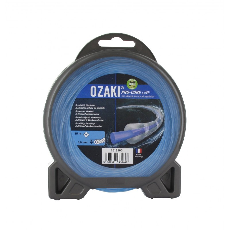 Coque fil nylon OZAKI PRO-CORE LINE. Co-extrudé âme absorbante (flexibilité) et enveloppe haute resistance (longévité) à forme helicoidale (réduction du bruit) - Longueur: 15 m, Ø: 3,00mm.