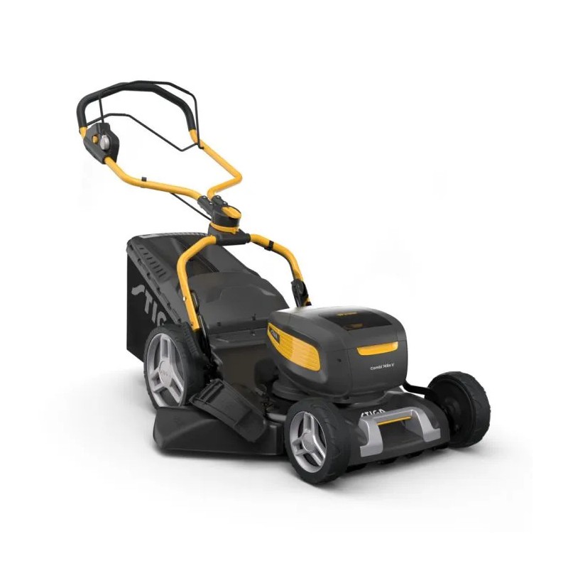 Ta tondeuse à gazon sans fil de pointe est également conçue pour être pratique. Le clavier intuitif du Combi 748e V te permet de choisir entre six vitesses et un mode éco, tandis que son système de coupe 4 en 1 offre six choix de hauteur de coupe. Pour t'adapter à ta pelouse et à la saison, tu peux décider de broyer, de ramasser, d'éjecter sur le côté ou à l'arrière. Et tu peux ajuster le guidon à ta taille. L'avant est également doté d'une solide protection contre les chocs, et d'une poignée de transport pour faciliter le levage.