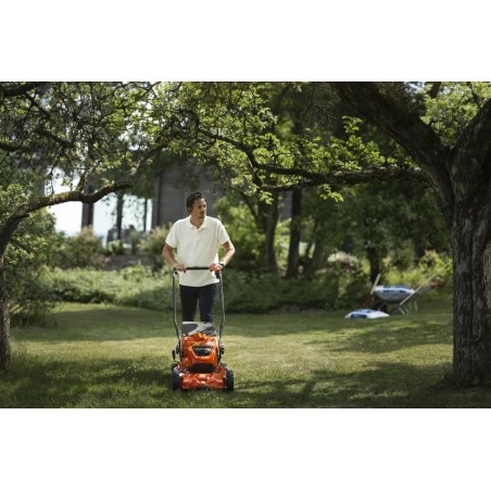La Husqvarna LC 251iS est une tondeuse à batterie facile à utiliser et offrant une tonte efficace avec un large plateau de coupe de 51 cm et deux méthodes de coupe - ramassage ou éjection latérale. Elle est idéale pour les jardins de taille moyens et grands, et grâce à ses deux emplacements de batterie, vous pouvez tondre plus longtemps avant d'avoir à recharger. La tondeuse est également dotée du mode SavE™, qui optimise l'autonomie en réduisant la vitesse des lames lorsque la pleine puissance n'est pas requise. Lorsque vous tondez dans des conditions exigeantes, la fonction Power Boost augmente automatiquement la vitesse de la lame pour plus de puissance. La LC 251i fait partie du système 36V Bli-X de Husqvarna, ce qui signifie qu'une batterie peut être utilisée pour plusieurs outils.