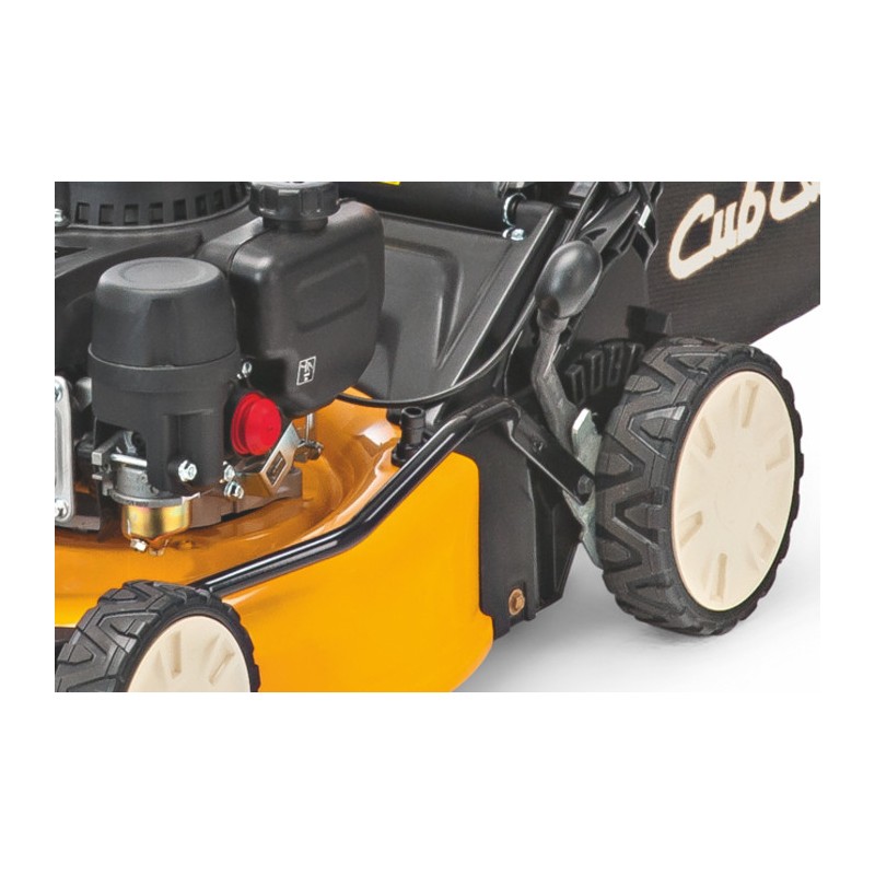 - Grandes roues arrière : Une bonne manœuvrabilité est la clé d‘une tondeuse performante. Les grandes roues arrière permettent un confort d‘utilisation optimal quel que soit le type de terrain.