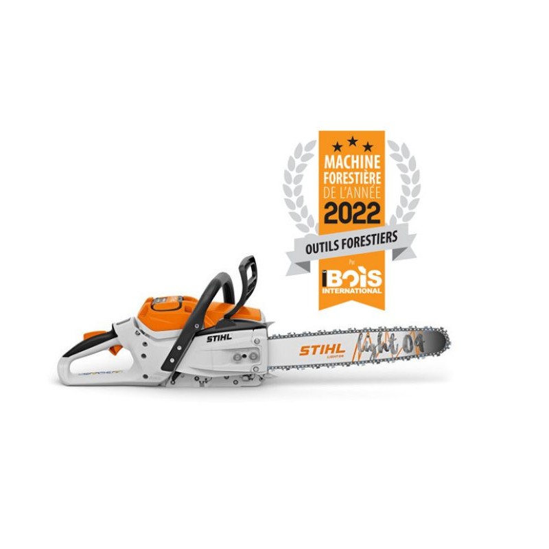 La tronçonneuse à batterie MSA 300 a été lauréate des Trophées de la Machine forestière 2022, dans la catégorie “Outils forestiers”. Les professionnels qui composaient le jury ont évalué les produits selon plusieurs critères : innovation technologique, comportement forestier à la ferme, impact environnemental, sécurité et ergonomie professionnelle.