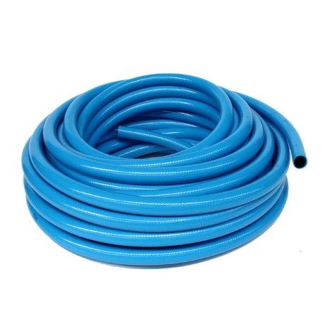 Tuyau en PVC plastifié renforcé par un tressage de fils de polyester. Il supporte les agents atmosphériques et la plupart des produits chimiques.