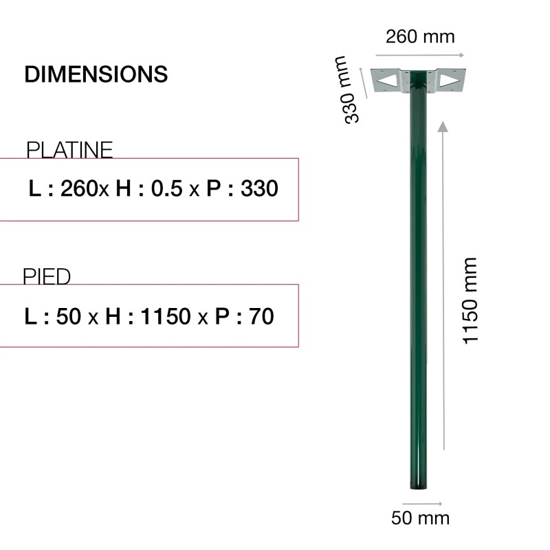 - Livré avec une large platine de fixation de 330x260mm garantissant une stabilité parfaite de la boite aux lettres Renz sur le pied