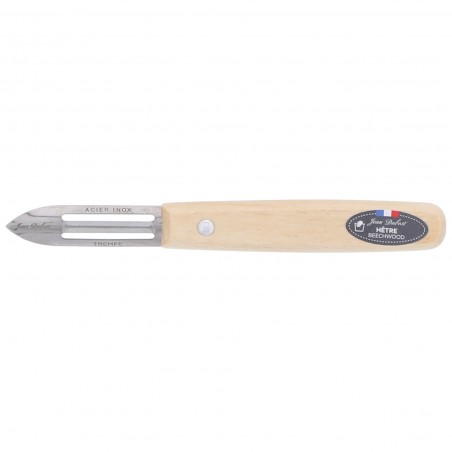 Description : Couteau éplucheur fruits et légumes, avec manche en bois de hêtre naturel. Fabrication française.