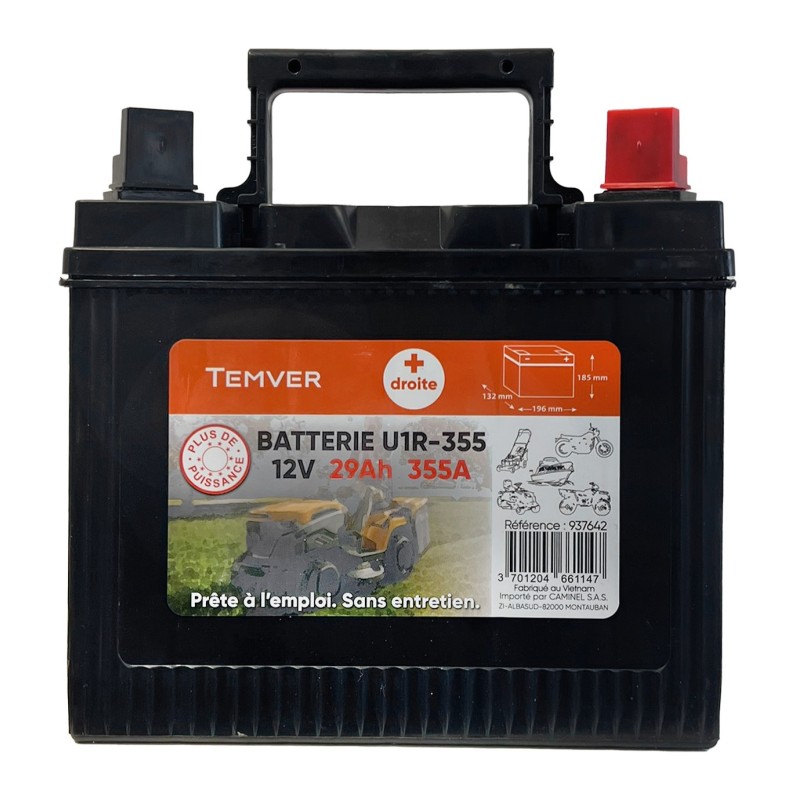 BATTERIE POUR AUTOPORTÉES U1R-355 - BORNE + A DROITE - TEMVER