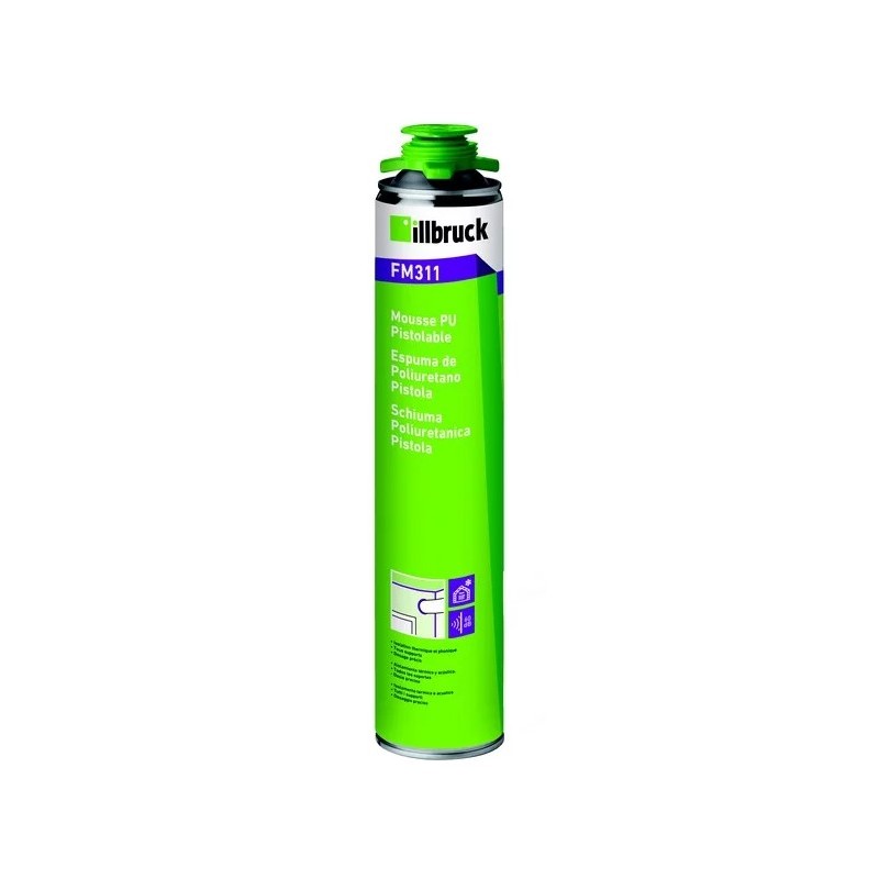 FM311 est une mousse polyuréthane mono composante, qui s'expanse et durcit avec l'humidité de l'air et du support. C’est une mousse expansive de qualité professionnelle, qui convient sur tous les supports rencontrés dans la construction : béton, maçonnerie, pierre, plâtre, bois, béton de ciment et de fibres minérales, polystyrène, polyester, PVC rigide... Cet aérosol pistolable s'utilise avec un pistolet pour mousse expansive, comme le pistolet NEC+ illbruck AA250. La mousse pistolable permet un véritable travail professionnel, avec un dosage précis, et une application soignée.