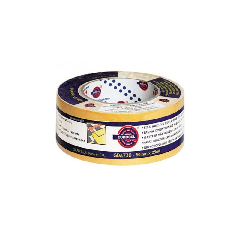 - Ruban adhésif double-face multi-usages à haute adhésivité sur support coton pour la fixation et la pose de moquettes, avec fort grammage de colle et adhérence élevé, même sur sols inégaux, le meilleur choix pour travaux sur surfaces rugueuses.