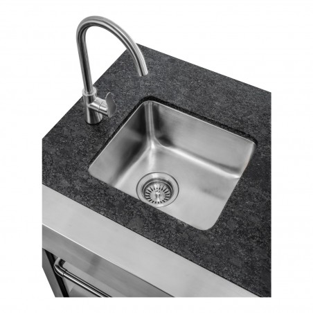 Avec notre cuisine Ultimate Outdoor, vous déplacez votre cuisine à l'extérieur et transformez votre jardin en un nouvel espace convivial. La cuisine Ultimate Outdoor vous offre les éléments idéaux pour que le succès soit complet. Flexibilité, confort d'utilisation et conception haut de gamme : autant de caractéristiques convaincantes. Le module Entertainment est fabriqué à partir d'acier inoxydable (type 304) de haute qualité avec un plan de travail en granit gris. L'équipement comporte un lavabo fonctionnel, une planche à découper en plastique, une glacière et un bac à déchets amovibles ainsi qu'une double prise intégrée. Les différents modules de la cuisine Ultimate Outdoor sont combinables avec les modules de l'Ultimate Entertainment 3200.