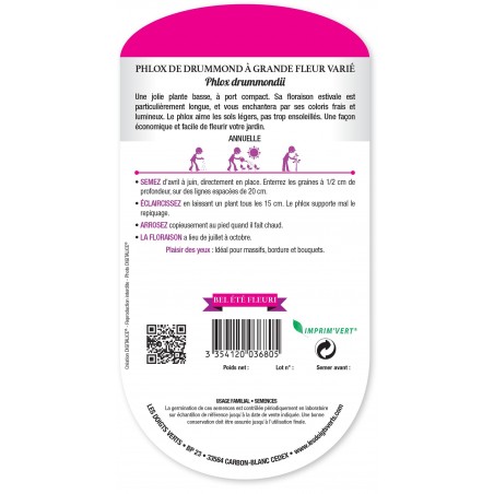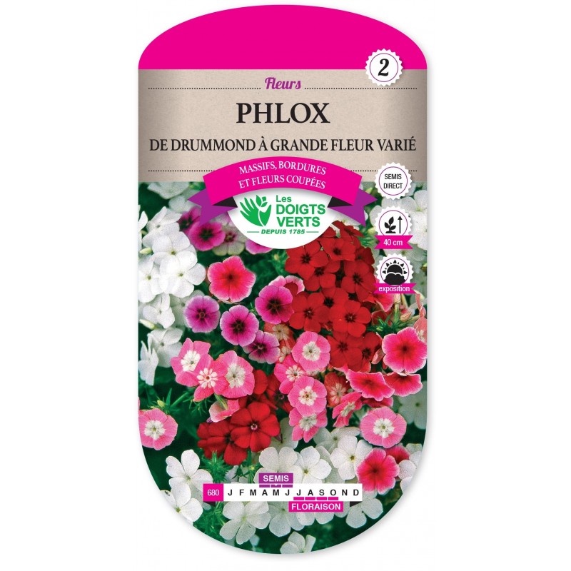 Le Phlox de Drummond est une jolie plante basse, à port compact. Sa floraison estivale est particulièrement longue, et vous enchantera par ses coloris frais et lumineux. Le phlox aime les sols légers, pas trop ensoleillés. Une façon économique et facile de fleurir votre jardin.